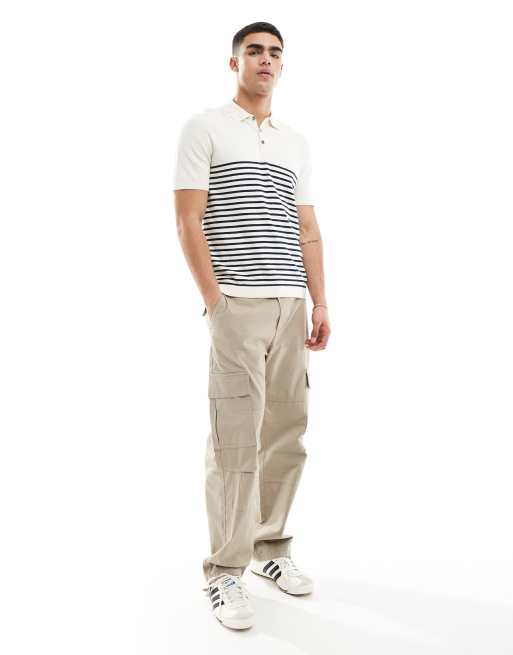 Jack & Jones - Polo in maglia a righe bianche e blu navy