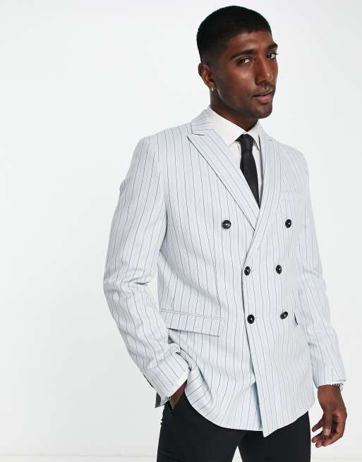 Jack & Jones Premium - Giacca da abito doppiopetto azzurra a righe