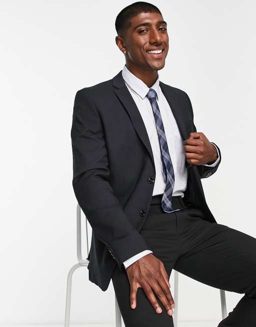 Jack & Jones Premium - Giacca da abito nera super slim stretch in misto lana