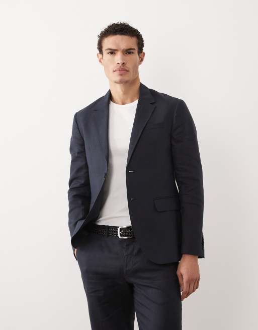 Jack & Jones Premium - Giacca da abito slim in puro lino blu navy in coordinato