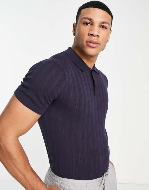 Jack & Jones Premium - Polo a costine in maglia blu navy