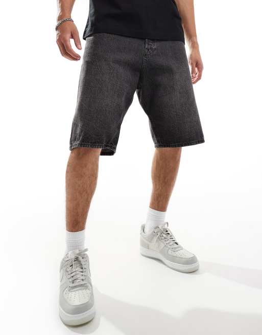 Jack & Jones - Ron - Pantaloncini di jeans skater nero slavato