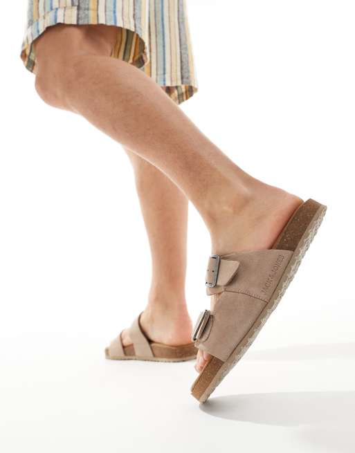 Jack & Jones - Sandali beige in pelle scamosciata con due cinturini