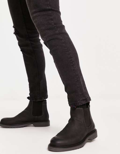 Jack & Jones - Stivaletti Chelsea in pelle neri con suola a coste