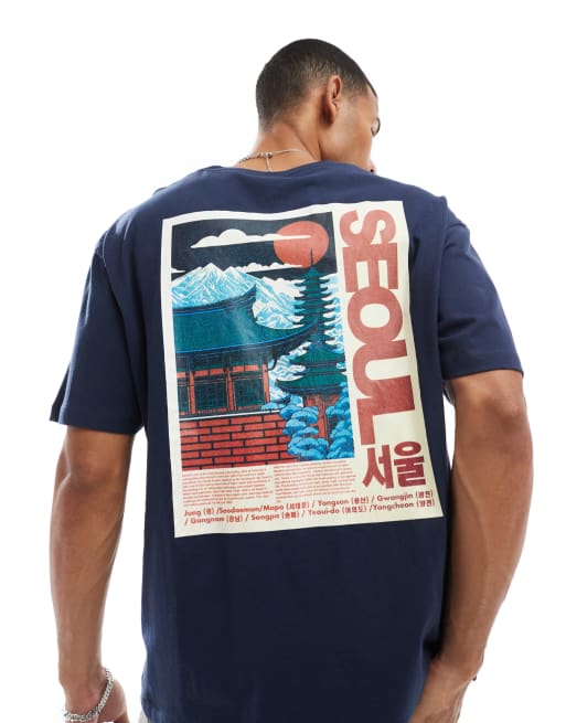 Jack & Jones - T-shirt blu navy con stampa oversize sulla schiena