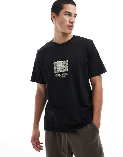 Jack & Jones - T-shirt oversize nera con stampa sul petto