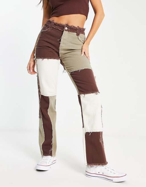 Jaded London - Jeans boyfriend marroni con motivo patchwork