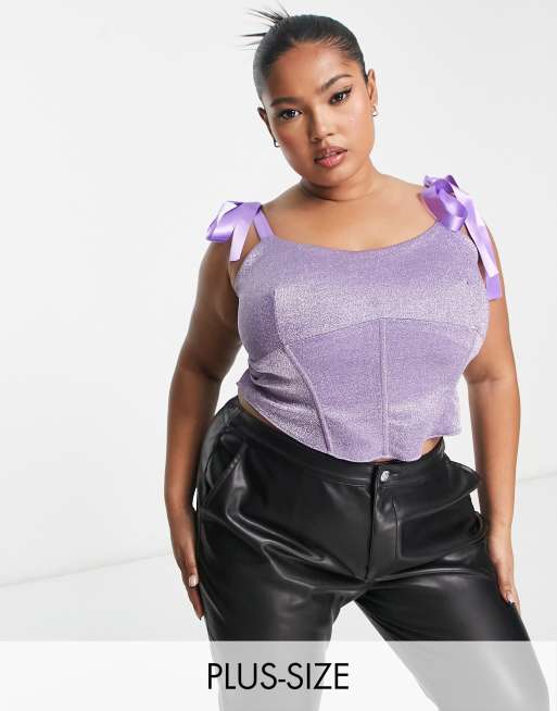 Jaded Rose Plus - Corsetto lilla scintillante con spalline a nastro