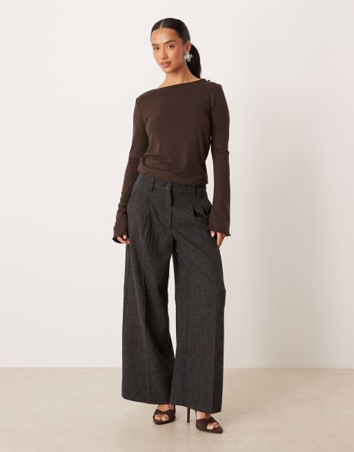 JDY Petite - Pantaloni sartoriali a vita alta a fondo ampio testurizzati grigio scuro