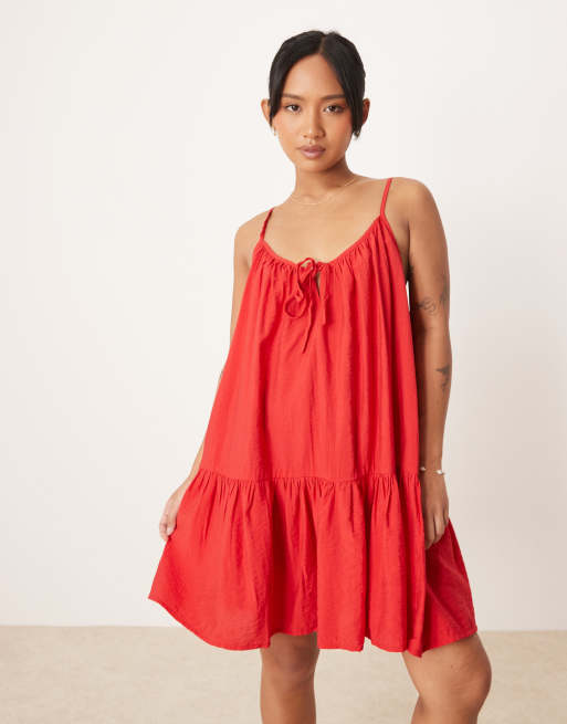 JDY Petite - Vestito corto rosso con orlo sceso