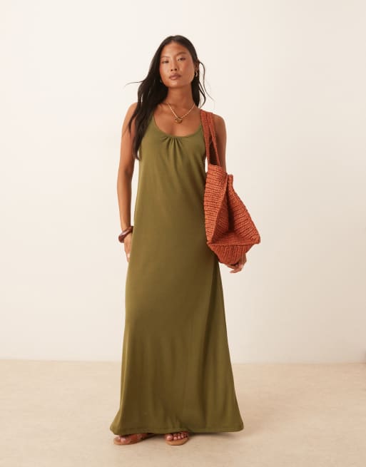 JDY Petite - Vestito lungo allacciato sul retro verde oliva
