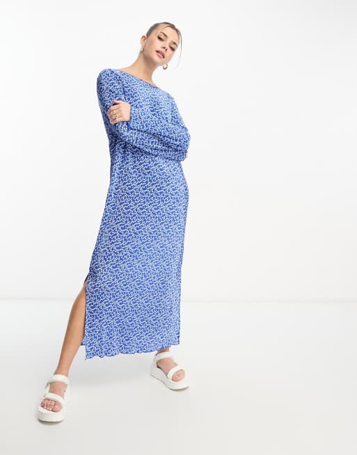 Esclusiva JDY - Vestito lungo blu a fiori con spacco laterale