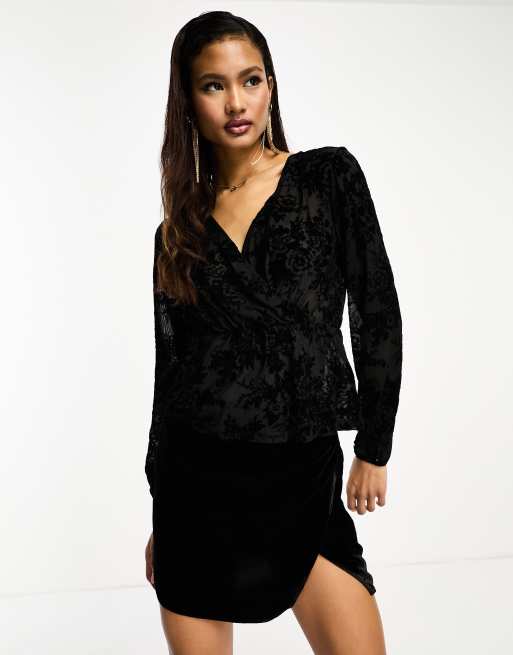 JDY - Blusa avvolgente in tessuto a rete nera a fiori