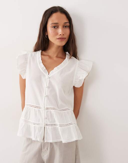 JDY - Camicia senza maniche bianca con scollo a V e volant