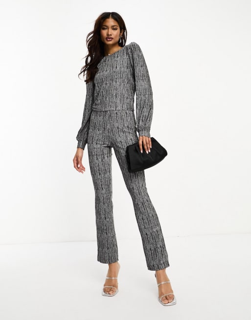 JDY - Coordinato con top scollato dietro e pantaloni nero e argento glitterato