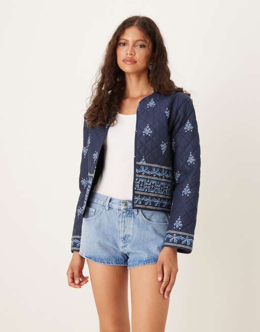 JDY - Giacca leggera trapuntata con stampa color blu navy