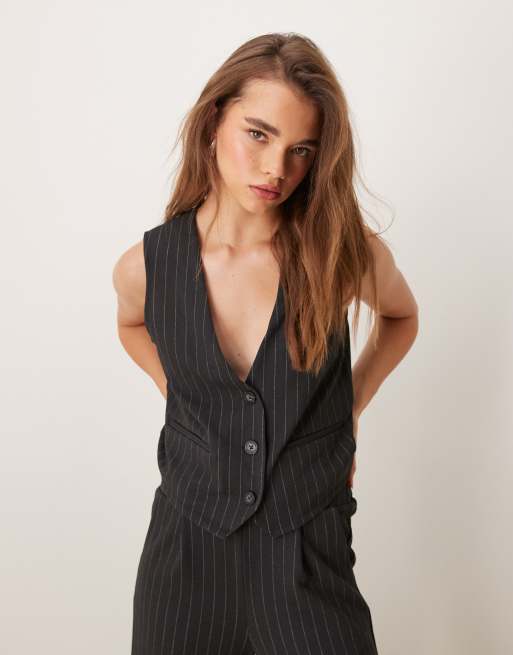 JDY - Gilet grigio scuro gessato in coordinato