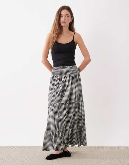 JDY - Gonna lunga nera a quadretti con fondo a balze e fondo sceso