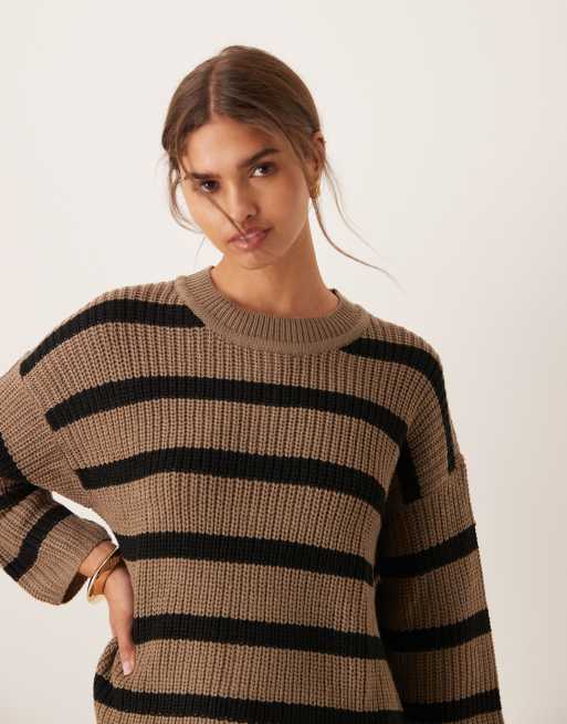 JDY - Maglione nero e marrone a righe