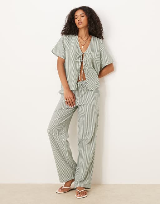 JDY - Pantaloni in seersucker verdi a righe in coordinato