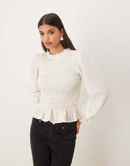 JDY - Top a maniche lunghe testurizzato bianco