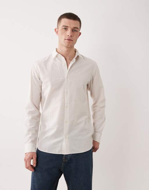 JJ Rebel - Camicia a maniche lunghe in lino beige a righe