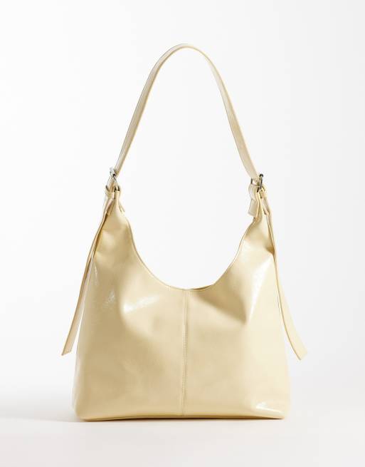 JJXX - Borsa da spalla squadrata in vernice giallo burro