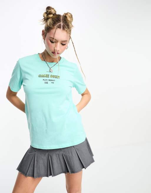 JJXX - T-shirt turchese con stampa "Game Over"