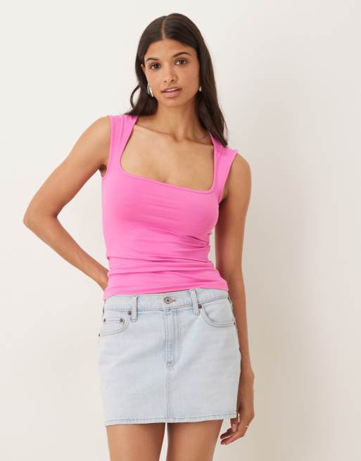 JJXX - Top in jersey rosa con scollo squadrato