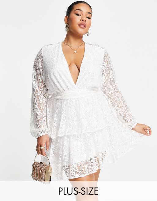 John Zack Plus - Vestito corto a maniche lunghe in pizzo bianco