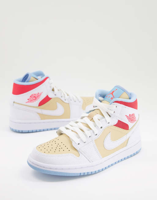 Air Jordan - 1 Mid SE - Sneakers bianche pesca e rosa