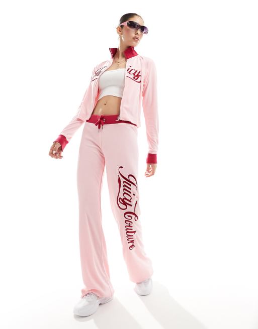 Juicy Couture - Pantaloni della tuta rétro a zampa in spugna rosa confetto in coordinato