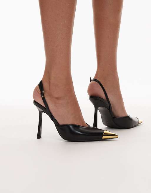 JW PEI - Savannah - Scarpe nere con tacco, cinturino posteriore e punta in metallo
