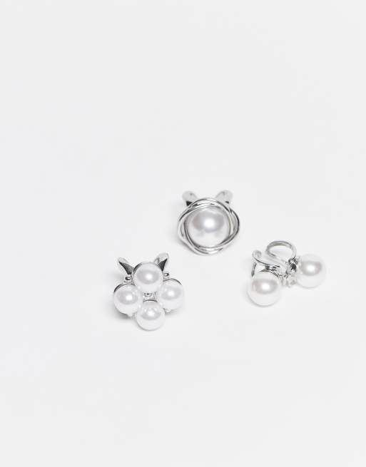 Esclusiva Kaiia - Confezione da 3 anelli spessi argentati con perle