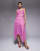 Esclusiva Kaiia - Coordinato a pois rosa e marroni con gonna lunga e top monospalla a doppio strato con scollo ad anello e dettaglio a sciarpa