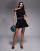 Esclusiva Kaiia - Coordinato nero in cotone elasticizzato con top con spallina scesa attorcigliata e minigonna