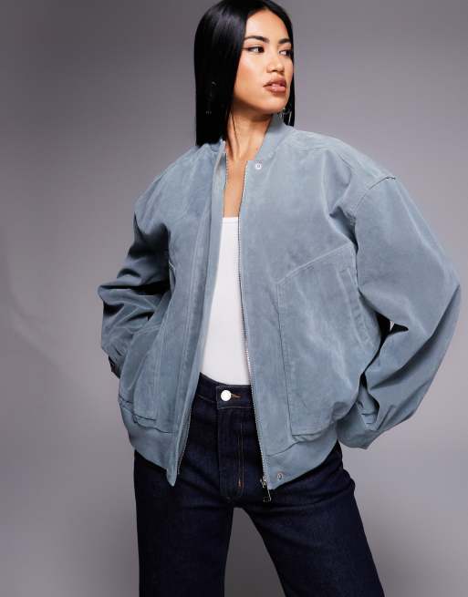 Esclusiva Kaiia - Giacca bomber in camoscio sintetico azzurro