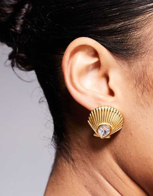 Esclusiva Kaiia - Orecchini a bottone in acciaio inossidabile tonalità oro con strass