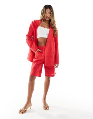 Esclusiva Kaiia - Pantaloncini sartoriali effetto lino rossi in coordinato