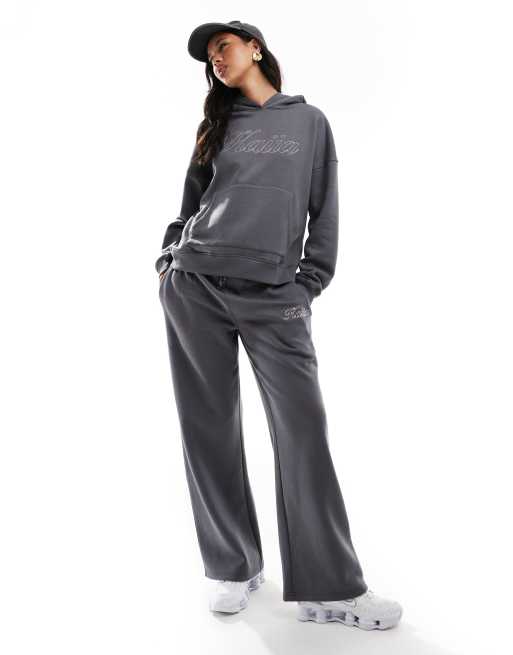 Kaiia - Coordinato antracite con felpa con cappuccio oversize, t-shirt e joggers con logo ricamato