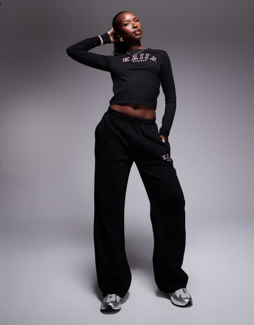Kaiia - Coordinato con top a maniche lunghe, felpa con cappuccio e joggers rosa e nero con logo ricamato