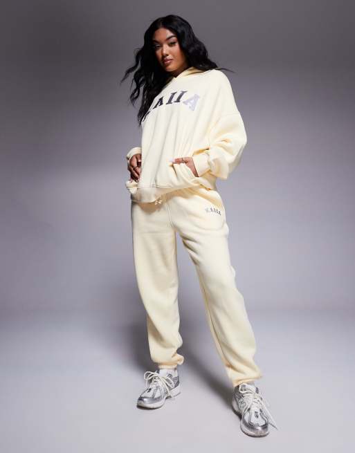 Kaiia - Coordinato giallo tenue e grigio scuro con T-shirt baby, felpa con cappuccio e joggers