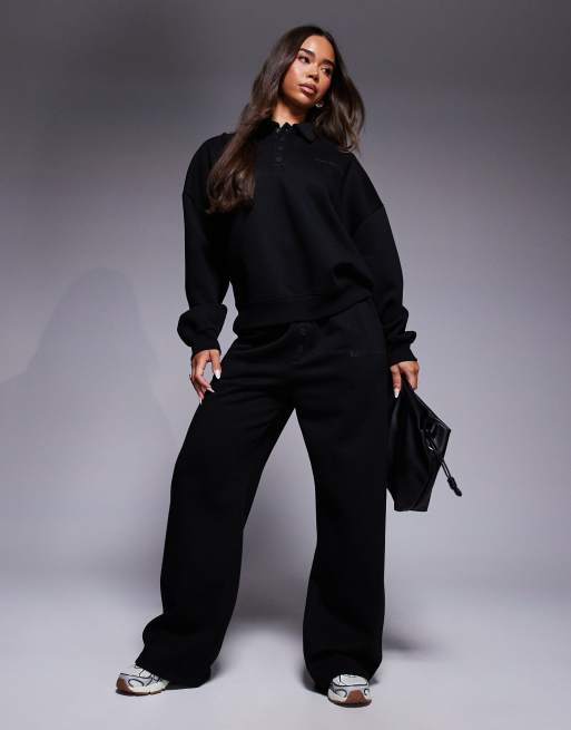 Kaiia - Coordinato nero con joggers e felpa con colletto e bottoni sul davanti