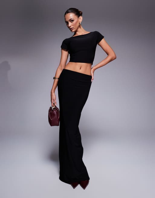 Kaiia - Coordinato nero sinuoso con top con scollo sul retro e gonna lunga