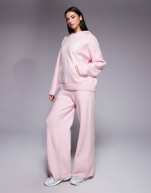 Kaiia - Coordinato rosa effetto lana con felpa con cappuccio e pantaloni a fondo ampio con logo ricamato