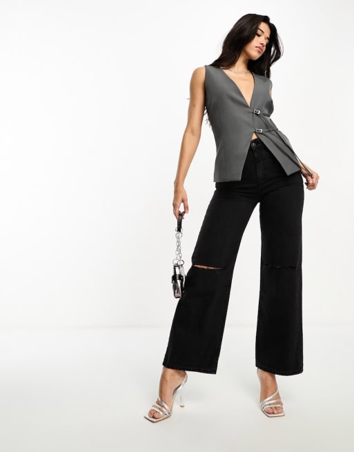 Kaiia - Coordinato sartoriale con gilet, minigonna e pantaloni cargo antracite