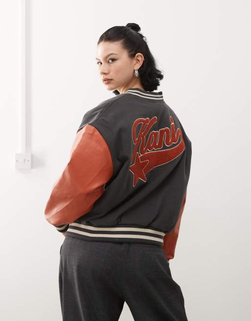 Karl Kani - Giacca stile college nera con logo e stella sul retro