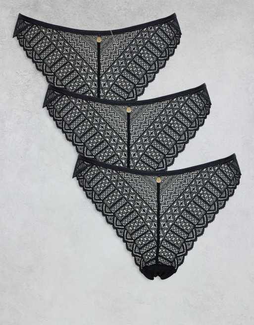 KBX - Confezione da 3 slip sgambati in pizzo neri
