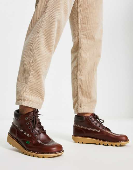 Kickers - Kick Hi - Stivali risvoltati in pelle marrone scuro