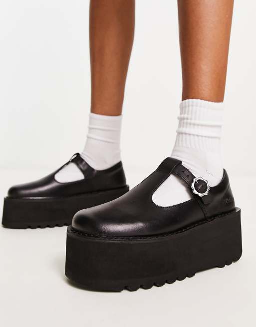Kickers - Kick - Scarpe nere in pelle con plateau e cinturino a T